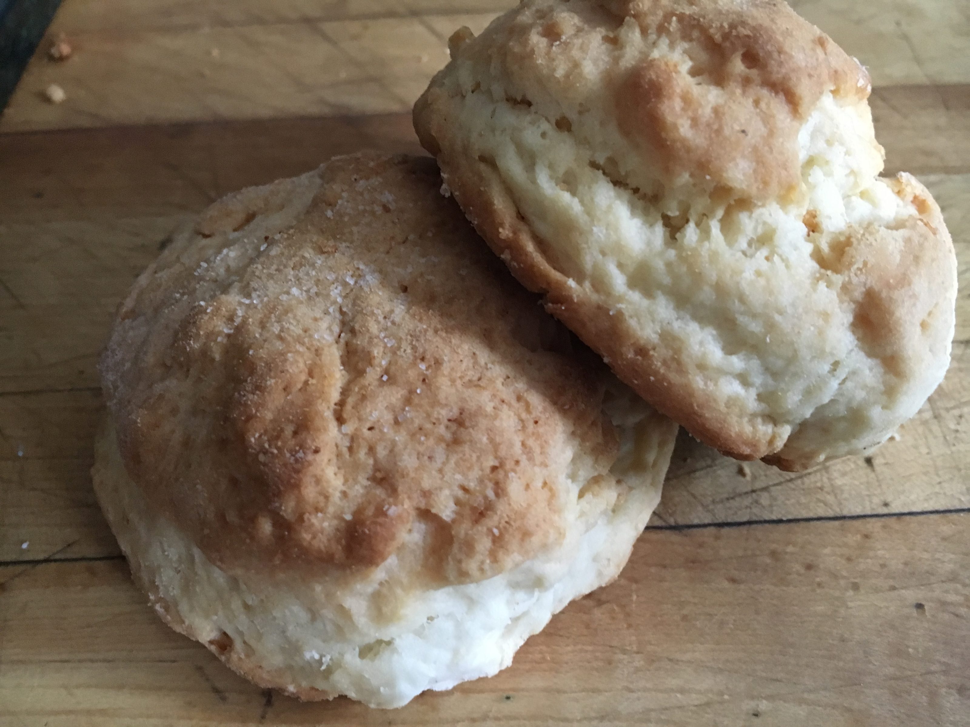 Do not overwork that dough!  Julia Child speaks lovingly of “the light biscuit hand” and means simply this: do not overmix the dough; do not blend all the butter in until it is smooth; do not create extra gluten; do not ruin that dough with a heavy biscuit hand! You can make them in an electric mixer, but use the paddle attachment, and mix them only for a few seconds. The dough moves from crumbly to barely-together with lots of butter chunks, and that is all you need to achieve. One expert in the biscuit business is Virginia Willis, a chef and cookbook author trained in French traditions and deeply rooted in Georgia’s southern cuisine. My recipe for Buttermilk Biscuits is informed by hers, and we were likely both influenced by Le Cordon Bleu’s.  Her book, Bon Appetit, Y’All was given to me by my friend Erica, another native Georgian, who assures me these recipes are the food of her people. To get Willis’s tangy, crumbly buttermilk biscuit recipe and a few variations, click here.