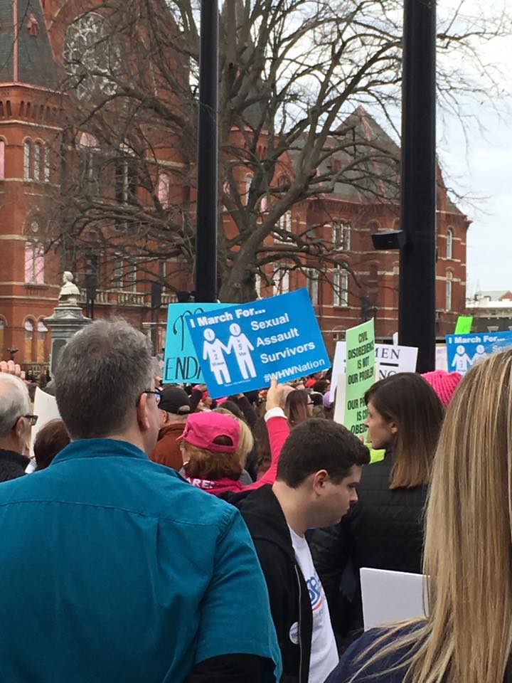 Heidi, my close friend from those prep school days, met me there for three reasons: her elderly mother, mine, and the March. We are sandwiched between 2 generations of those who need our care; we both work full time; we raised three children; and we now escort our over-90 moms through the physical and emotion labyrinth of their twilight. We grew up feminist despite sexism everywhere in our dangerous, privileged, preppy world where man-boys, teachers and coaches sometimes picked us off like runners on a field. The Women’s March was another moment in the curious odyssey to a simple, balanced concept: Equality. My 23-year-old daughter fights the uphill battle toward equality with strength and edgy tolerance, and she sent me this post. It captures the mix of outrage and humility inherent in the feminist response to a white man’s world. Why is it still white? Why is it still a man’s? Why can’t I break in? We shrug it off, we keep going, and we remember. In protest of, among other things, The Donald’s egregious misogyny, the Women’s March inspired us and gave us hope for progress. There were so, so many of us.